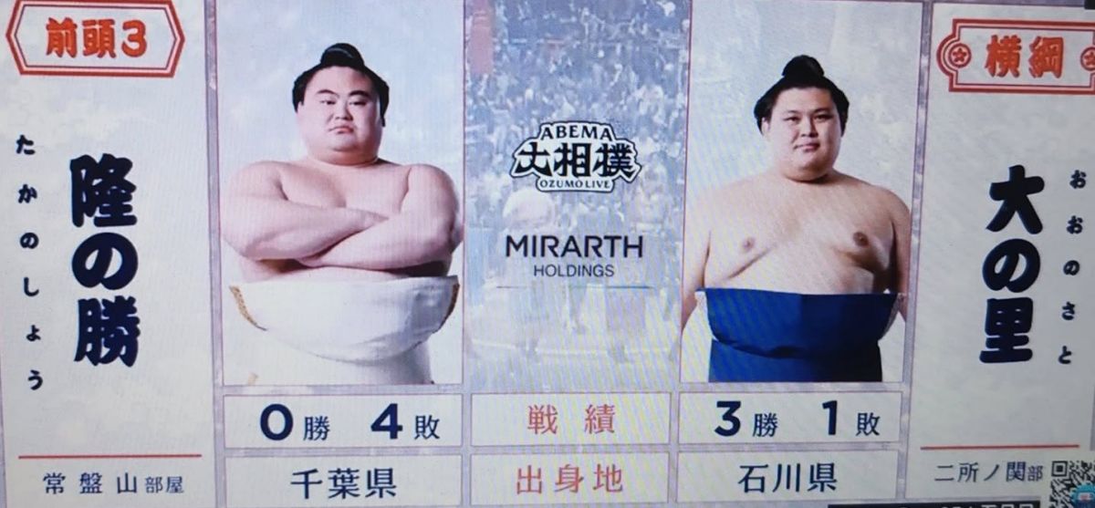 Их аварга Ооносато, Таканошёо /М-3/-той таарч барилдан түүнийг цүкиотоши мэхээр давснаар 4 даваа, 1 унаатай башёг үргэлжлүүлж байна.