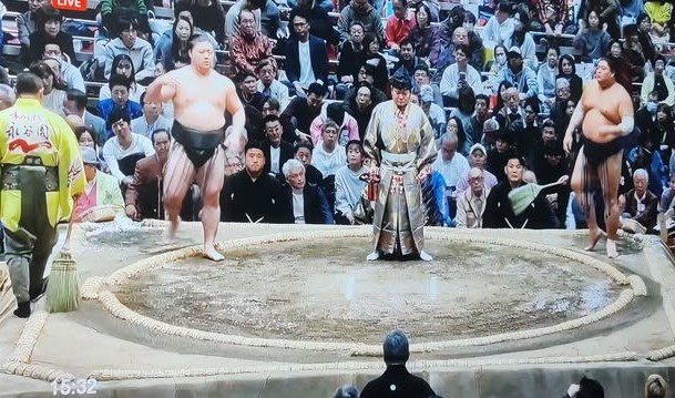 Хамгийн ахмад сумоч Тамаваши Б.Мөнх-Оргил/М-5/ энэ өдөр Фүжинокава/М-7/-тэй учраа тааран барилдаж түүнд шитатэнаге мэхээр унаснаар 2 даваа, 6 унаатай башёг үргэлжлүүлж явна.