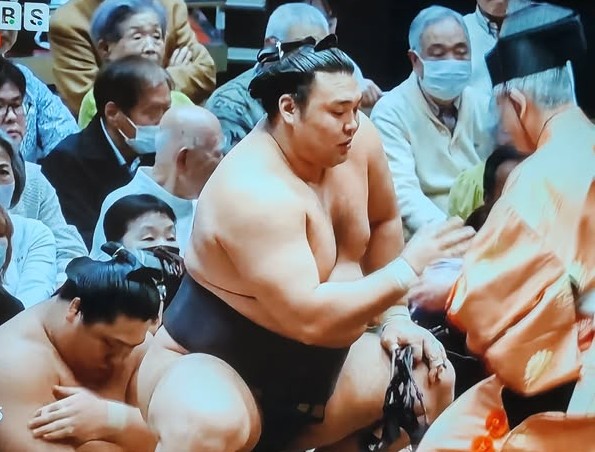 Озэки Аонишики энэ өдөр Вакатакакаге/М-2/-тэй барилдаж түүнийг кирикаэши мэхээр хаяж 7 даваа, 2 унаатай боллоо.