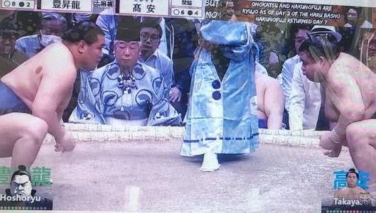 Озэки Котозакүра энэ өдөр Таканошёо/М-4/-той Дайэйшёо/М-4/-той хүч үзэн барилдаж түүнийг хатакикоми мэхээр хаяснаар 4 унаа, 6 даваатай боллоо.